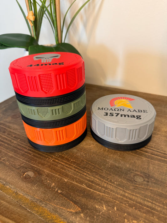 Ammo Storage Container | 3D Printed | Black Base | Choose Lid Style: Punisher | Come and Take It | Stackable | Molon Labe | Caliber