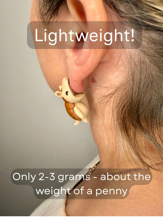 Armadillo Chomper Earrings | 3D Printed Southwest Animal Jewelry | Cute Armadillo Earrings | Funny Statement Earrings | Quirky Gift