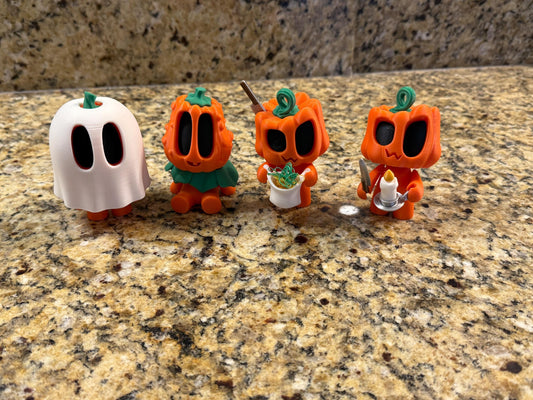 Customizable 3D Printed Blob Pumpkins – Articulating Halloween Figures with Trick-or-Treat Bag, Candle, Ghost Costume & More!