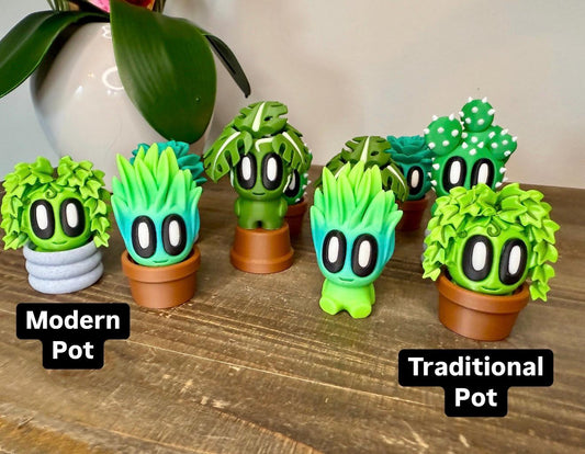 Cute 3D Printed Plant Figures with Eyes & Butt – Cactus, Succulent, Monstera, Snake Plant, Ivy – Multicolor Pots – Gift for Plant Lovers