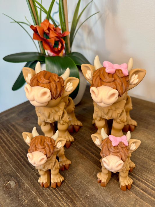Highland Cow - Articulated & Flexi -Girl Cow with Bow