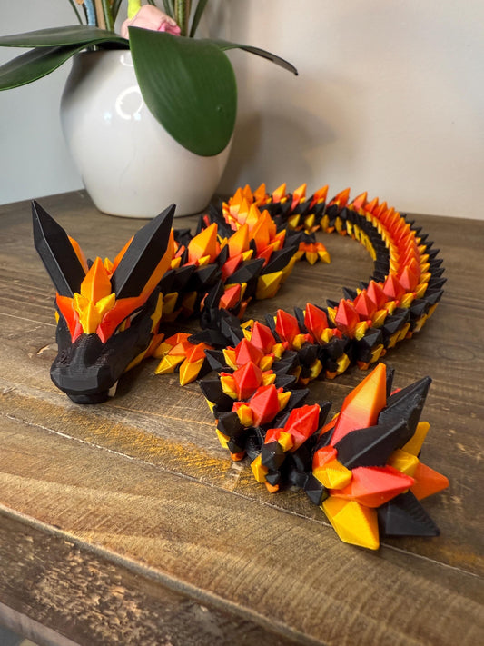 Fire Crystal Dragon Full Size | 26" 3D Printed Articulated Dragon Figurine
