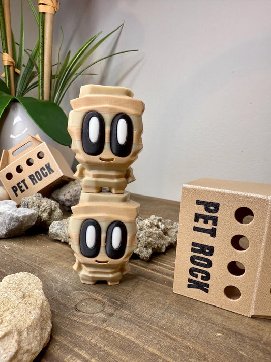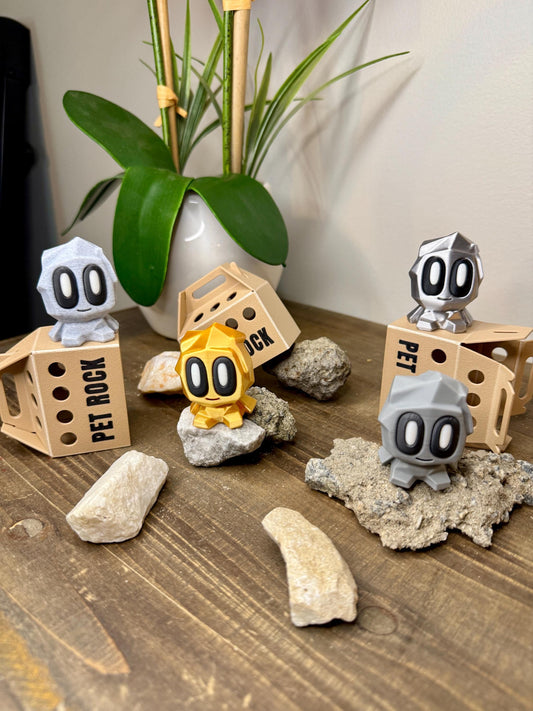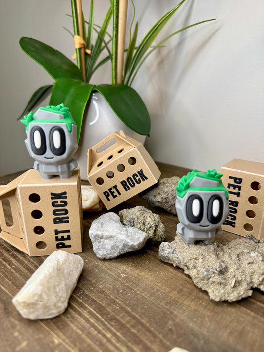 Sitting Blob Pet Rock with Funny Little Butt & Durable Folding Box | 3D Printed