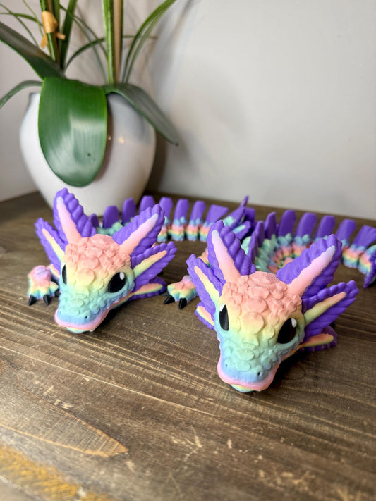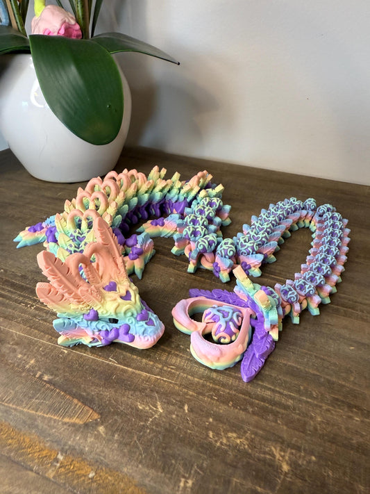 Pastel Rainbow Heart Crystal Dragon Full Size | 27" 3D Printed Articulated Dragon Figurine | Fantasy Collectible with Heart Details