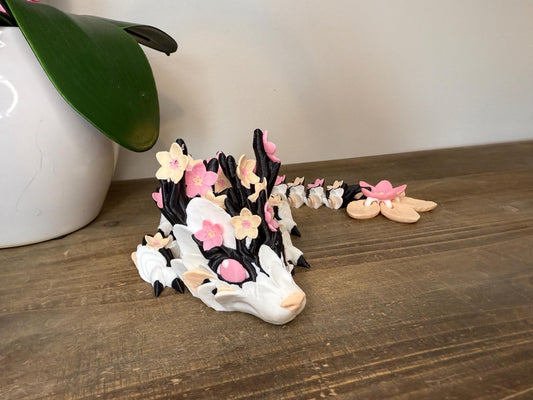 Cherry Blossom Dragon | 3D Printed Articulated Fantasy Dragon | Desk Pet Figurine | Flower Dragon Collectible | Articulated Dragon Toy
