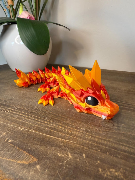 Fire Crystal Dragon Full Size | 26" 3D Printed Articulated Dragon Figurine