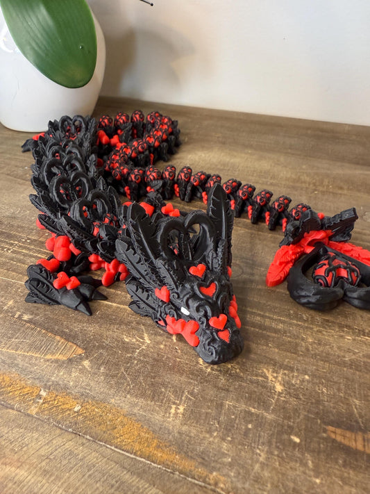 Red Black Heart Crystal Dragon Full Size | 27" 3D Printed Articulated Dragon Figurine | Fantasy Collectible with Heart Details