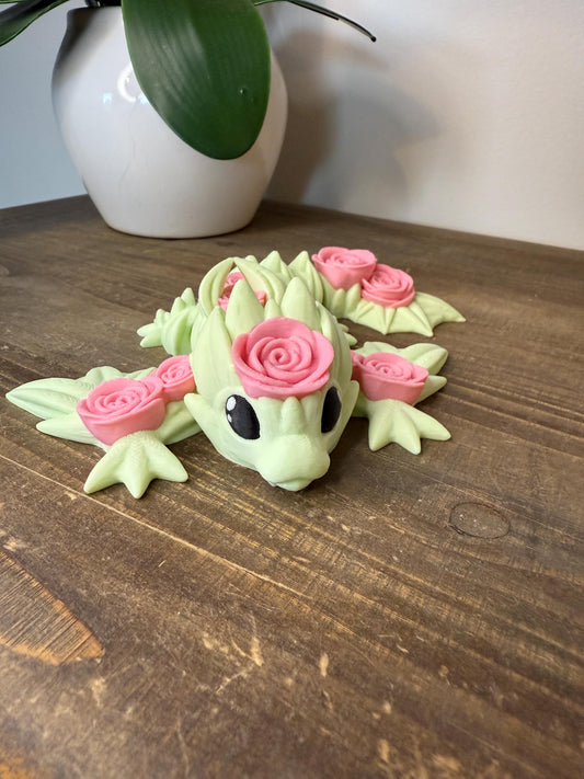 Rose Dragon Figurine | 8" 3D Printed Articulated Fantasy Dragon