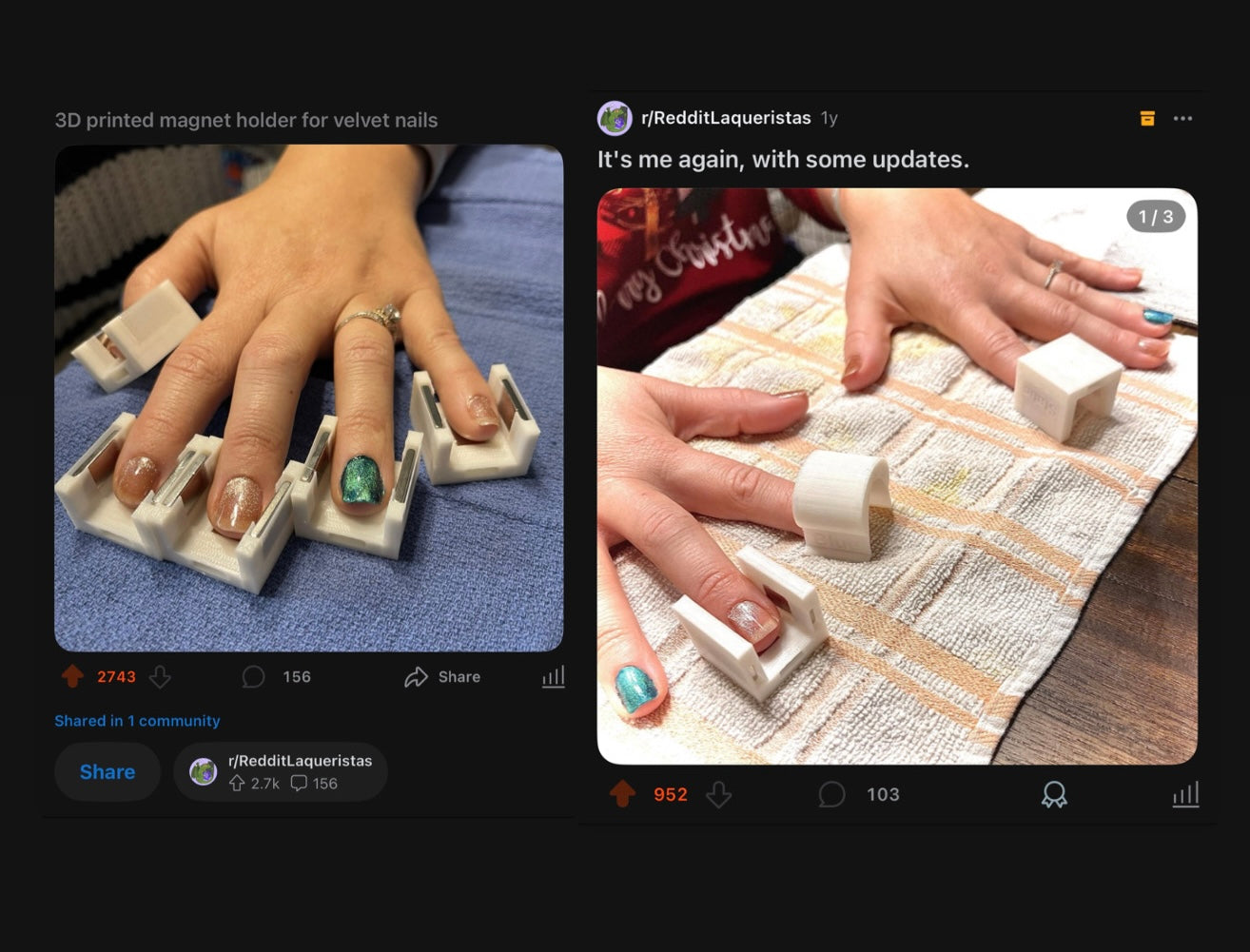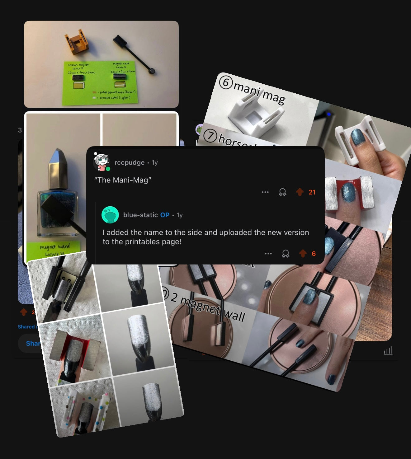 The Mani-Mag turned into a great group effort, with feedback and ideas from the nail community. Positive reviews led to design improvements, including the name suggested by a Redditor.