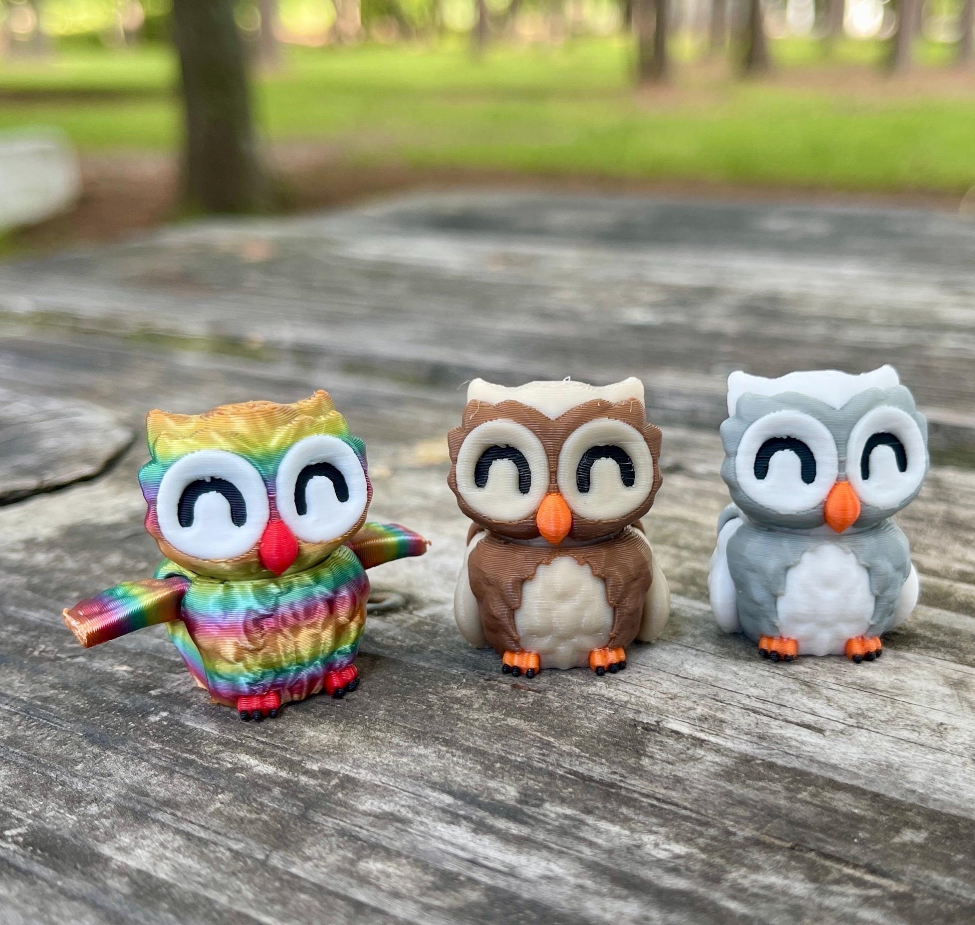 Bring home this adorable, tiny articulating 3D printed owl, perfect as a keychain or a small toy. With a rotating head and wings that open, this charming owl is a delightful companion for owl lovers, keychain collectors, or anyone who enjoys unique, pocket-sized toys. Crafted with attention to detail, this mini owl is not only cute but also functional. Available in multiple colors, it can easily match your style or make a thoughtful gift.
