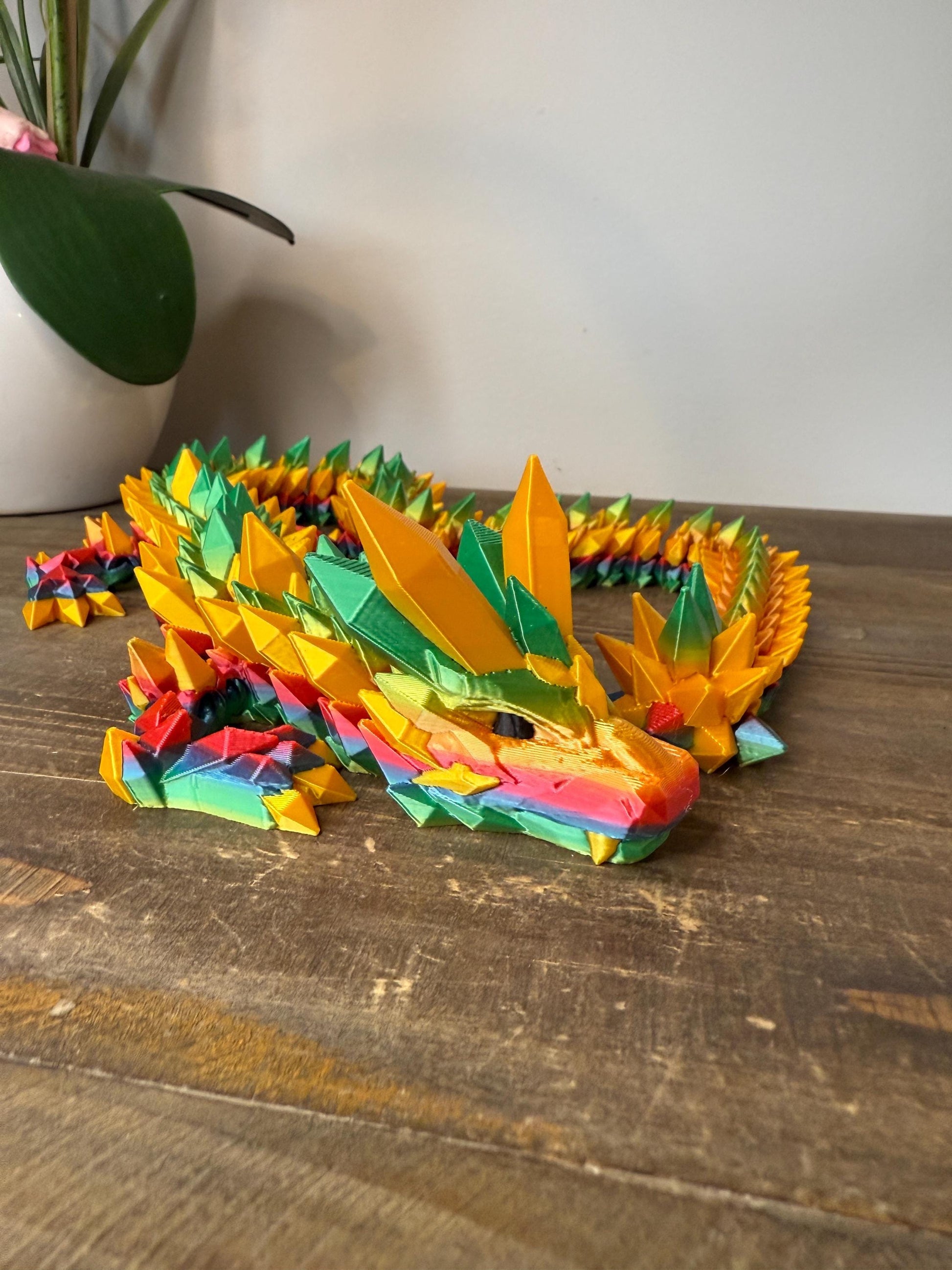 Rainbow Crystal Dragon Full Size | 26" 3D Printed Articulated Dragon Figurine | Multicolor Fantasy Dragon Collectible