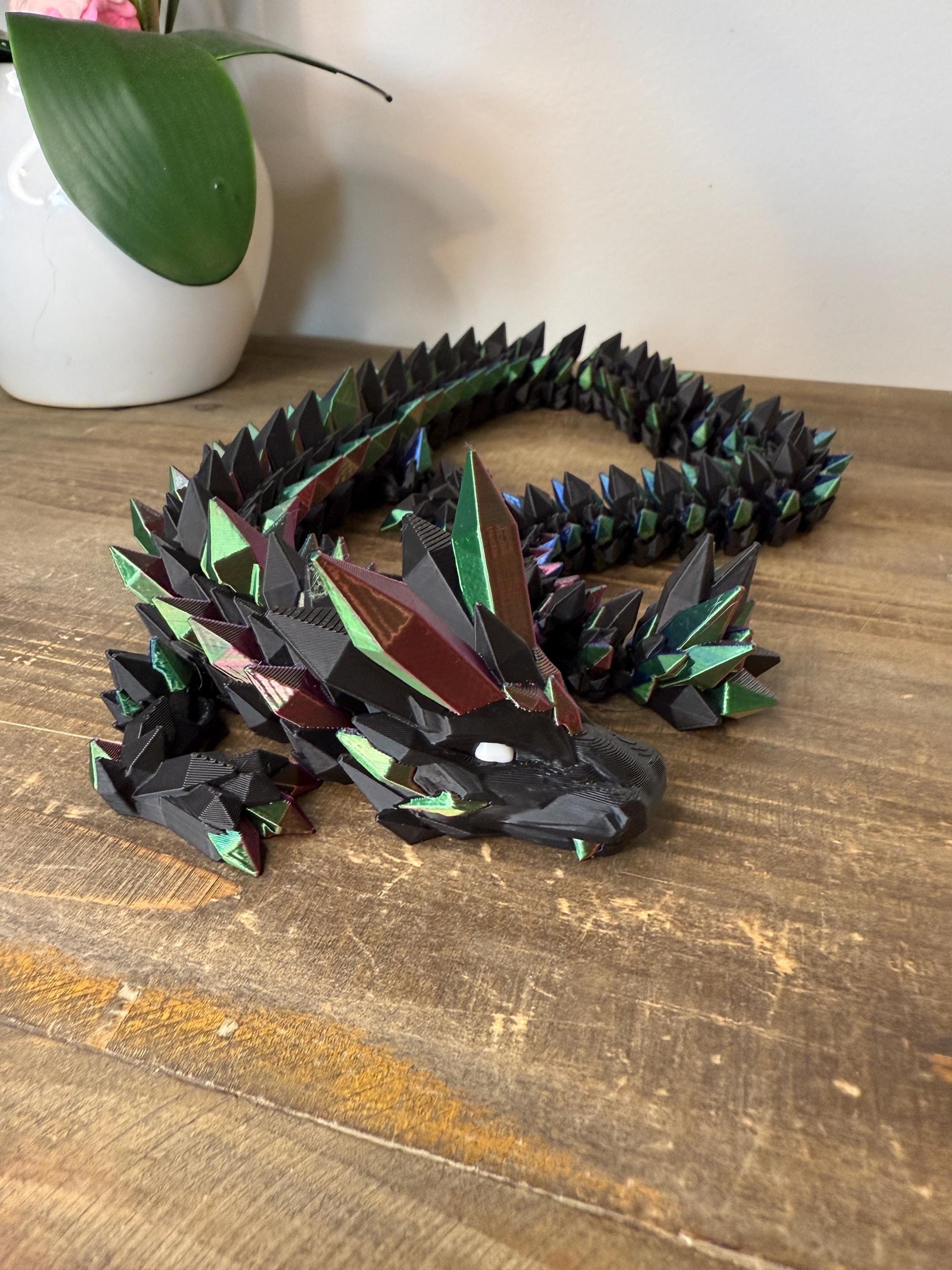Tricolor Crystal Dragon Full Size | 26" 3D Printed Articulated Dragon Figurine